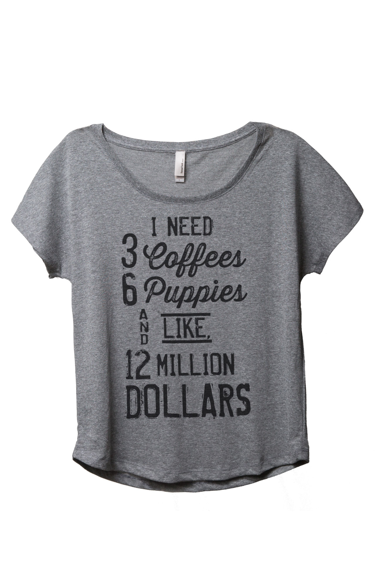 Thread Tank 3 Coffees 6 Puppies 12 Million Dollars Women S Relaxed Slouchy Dolman T Shirt Tee Heather Grey Large Walmart Com